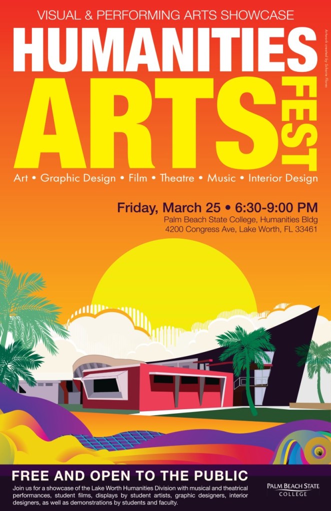 Coming to the Lake Worth campus of PBSC on Friday, March 25 from 6:30-9 PM…the inaugural HUMANITIES ARTS FEST!